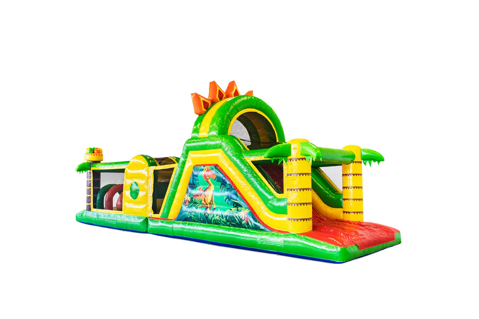 Ben je op zoek naar een spectaculaire attractie? Dan heb je hem zeker gevonden met deze opblaasbare stormbaan! Hij is 13 m lang en uitgevoerd in een spannend dino thema. Een opblaas stormbaan is een geweldige publiekstrekker voor jong en oud. Bereik de overkant door te rennen, springen, klimmen en kruipen. Wie is er als eerste aan de andere kant? Deze opblaasbare stormbaan met speelobjecten is perfect voor een schoolfeest, bedrijfsuitje of ander feestelijk evenement.